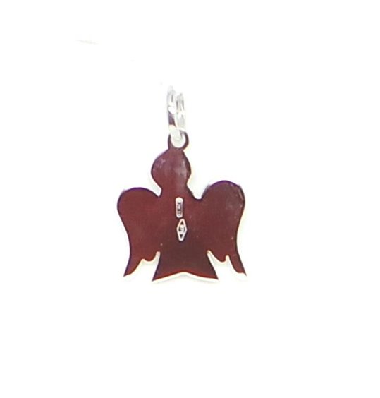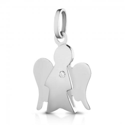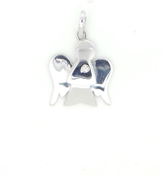 PENDENTE ANGELO IN ORO BIANCO 375/°°° CON BRILLANTINO COMPRENSIVO DI LACCETTO IN FILO CERATO NERO MISURA DEL PENDENTE CM BASE 1.7X ALTEZZA CM 2. PESO GR 1.4