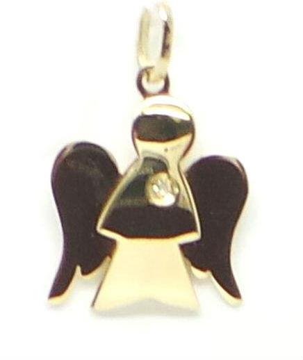 PENDENTE ANGELO COLLEZIONE IN ORO ( 375/°°°) GIALLO LUCIDO MISURA MM 2,2 x base 1,6 SPESSORE MM 2.05 PESO GR 1.1.CON DIAMANTE CENTRALE. TUTTO CON CERTIFICATO.